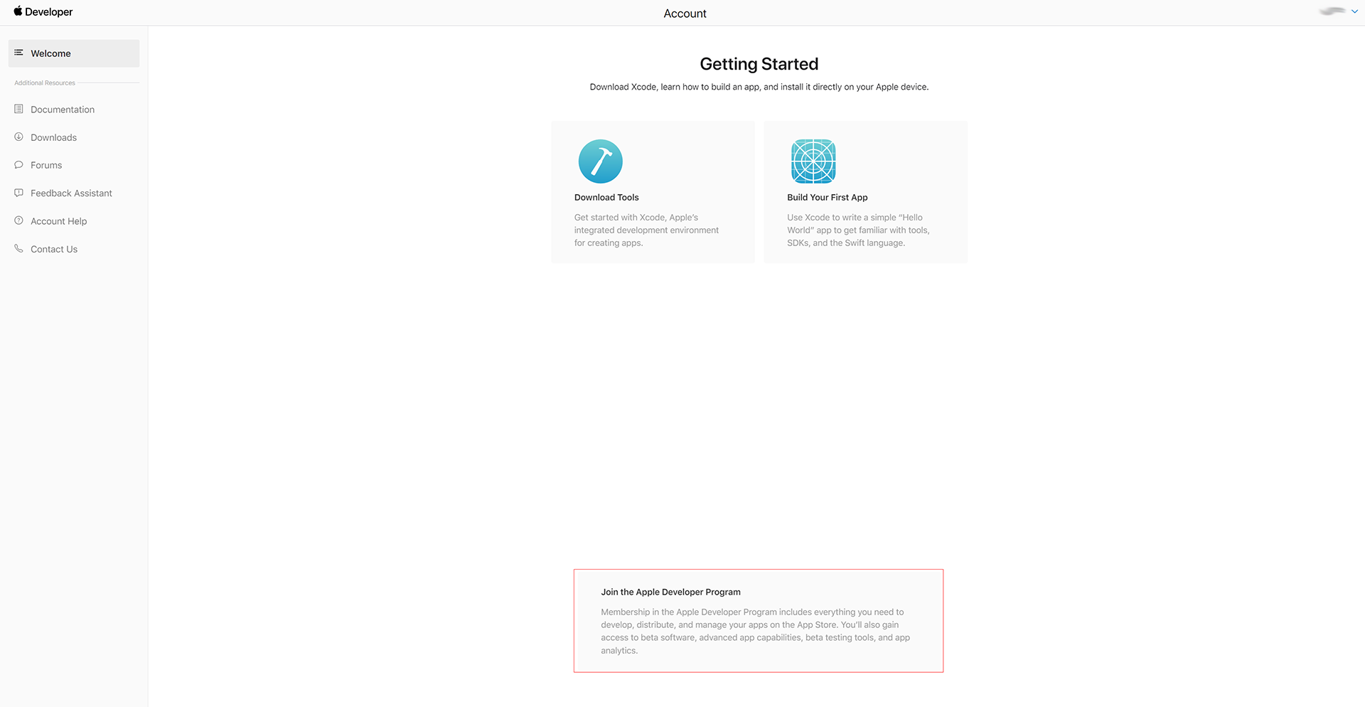 애플 개발자 페이지 접속 https://developer.apple.com/ - 상단메뉴 Account 클릭 - Joint the Apple Developer Program 클릭 |