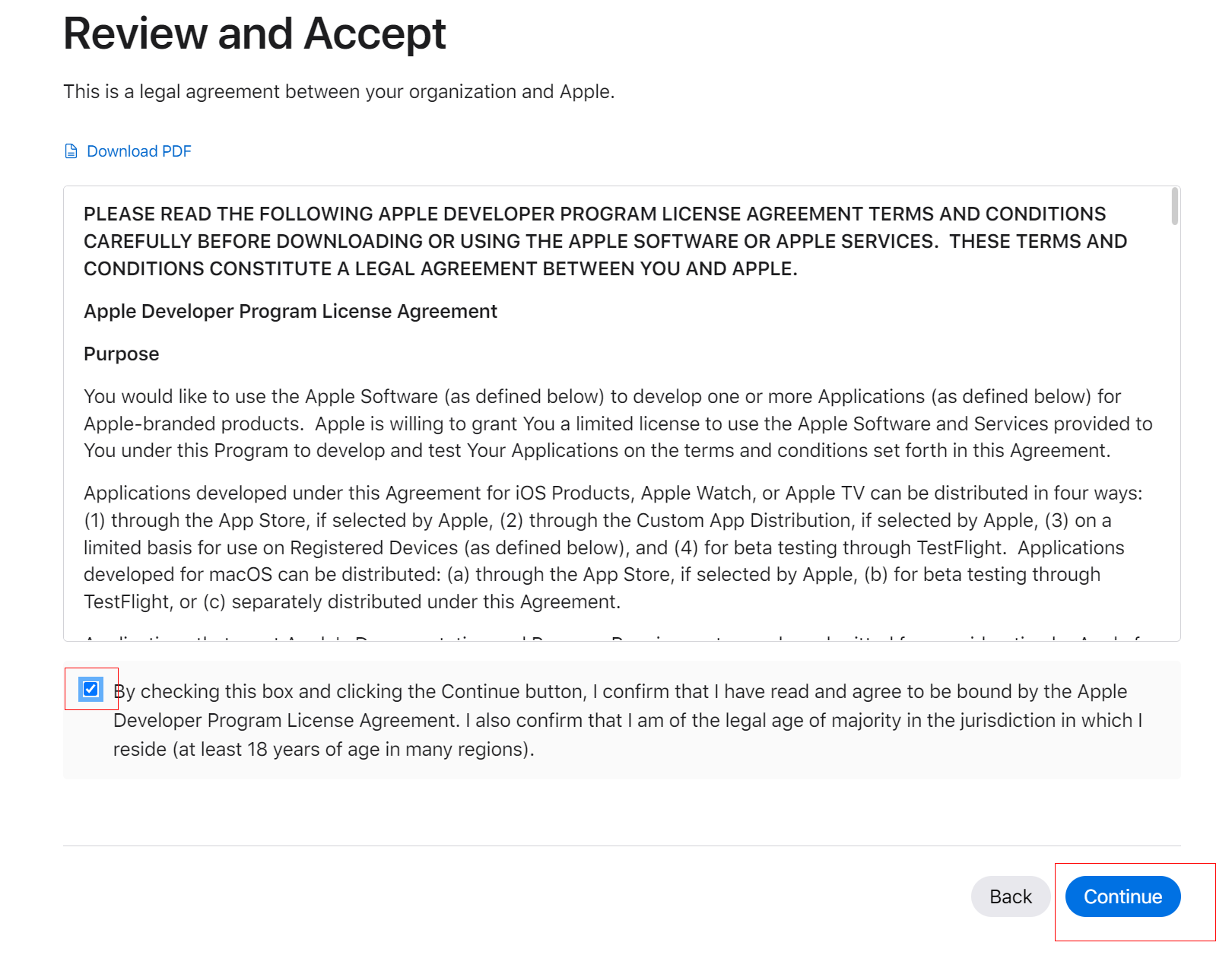 Review and Accept - 체크 박스 선택 - Continue 클릭 |