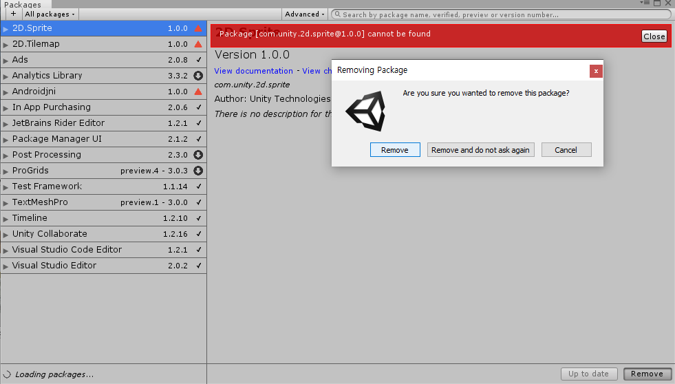 | 4 | Package Manager - 좌측 패키지 리스트에서 빨간경고가 뜬 패키지 삭제하기 |