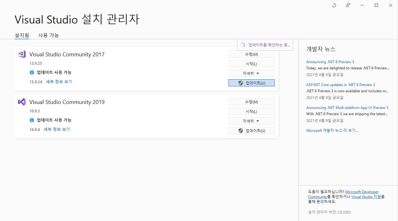 | 1 | 비주얼스튜디오 업데이트 |