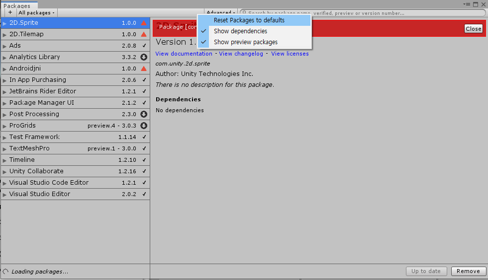 | 5 | ★ Package Manager - Advanced - Reset Packages to defaults 클릭 |