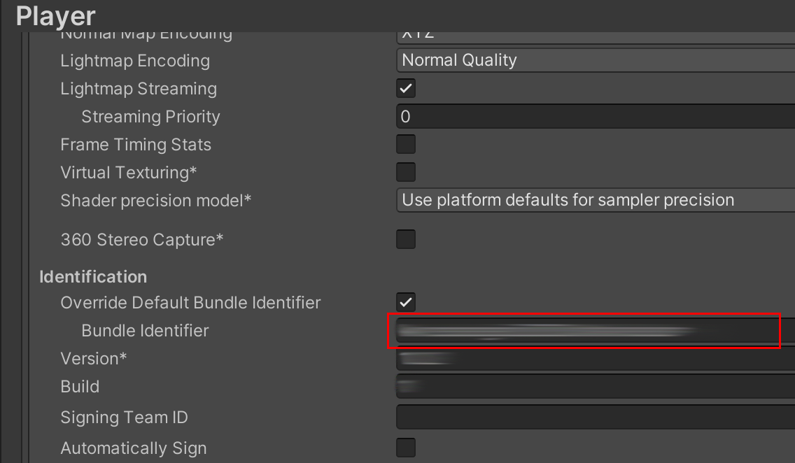 ex) 개발 프로그램 BundleID(Identifier) 위치 - Unity PlayerSettings - XCode |